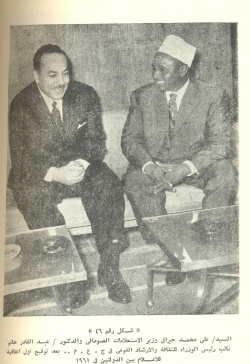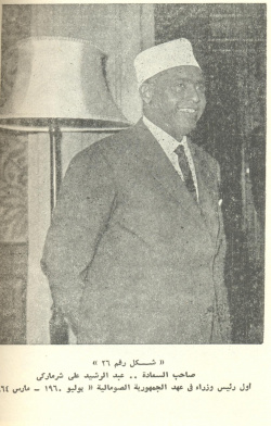 - ↑ راجع كتاب (( خطب وتصريحات الدكتور عبد الرشيد علي شرماركي)) رئيس وزراء الصومال ( من مطبوعات وزارة الاستعلامات الصومالية 260 صفحة ) للمؤلف.